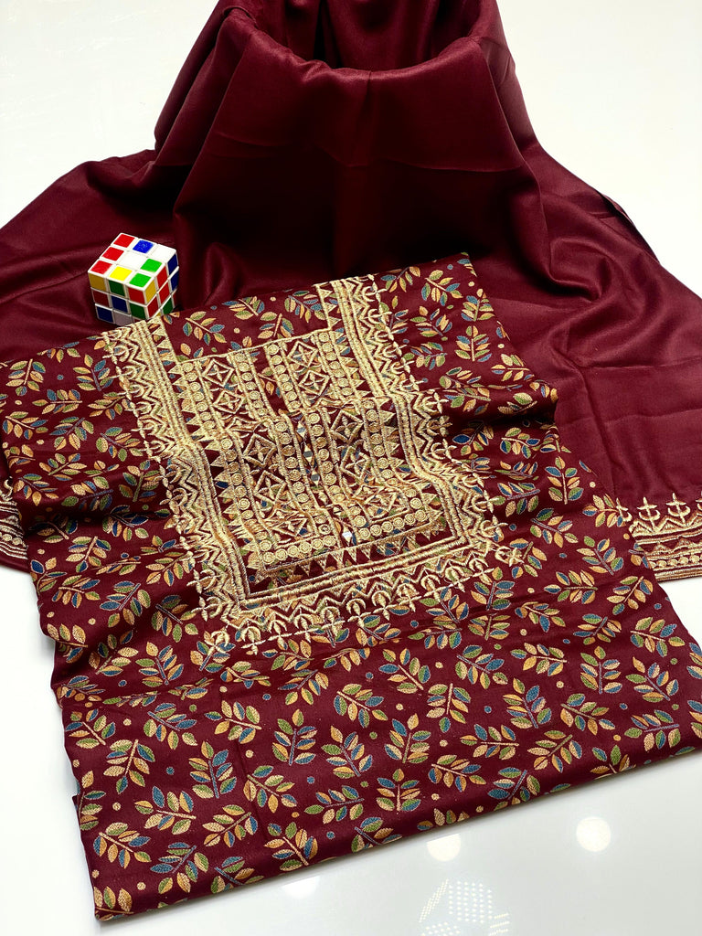 Embroided Dhanak Trouser