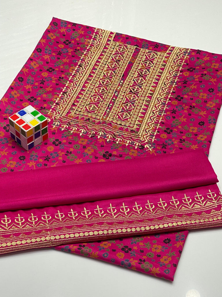 Galla Embroided & All Over Printed Dhanak Shirt