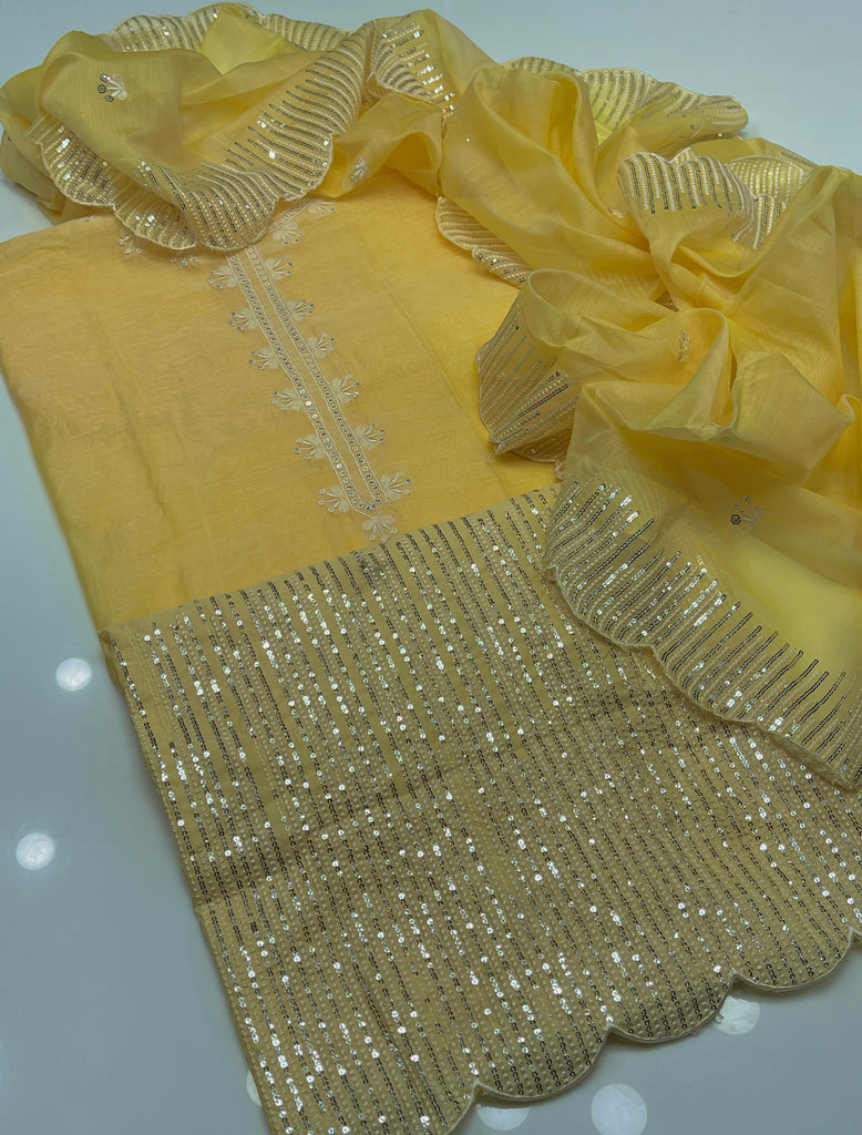 Sequence Sitara Work Galla Daman Machine Embroided Paper Cotton Shirt